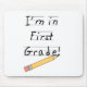 Lined paper and a big yellow pencil with kid style text that reads "I'm in First Grade!" on first grade student T-shirts, school tote bags, stickers, buttons, cards, and more!