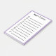 Personalize this lavender purple outlined to do list lined sticky notes pad by changing the name template. There are 10 lines with checkboxes to list your priorities of whatever needs to get done today. Or give as an office gift. Also, you can customize the type of list it is by changing the "to do" to something else like shopping.