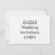 Plain white envelopes are included with paper invitations and will come to fit the invitation size you select. If you don’t need the envelopes, you may choose to not receive them by selecting the dropdown below "Envelopes" and choosing "None." If you’d like to have a design on your envelopes, you can browse all of these available envelopes to find the design that complements your Linen 6 25 X 4 5 Wedding Invitations.