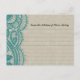 These fun recipe cards feature images of linen and teal blue lace (ALL ELEMENTS ARE PRINTED EFFECTS--THERE IS NO ACTUAL LINEN, ETC). Personalize with a name or any text you choose. Great for a bride, newlywed, or anyone whose recipe file could use some sprucing up. NOTE THAT the name is shown in black, but you can change that to any color text.