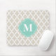Linen Beige and Aqua Moroccan Custom Monogram Mouse Pad