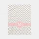 Linen Beige and Pink Chevron Custom Monogram Fleece Blanket