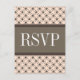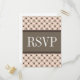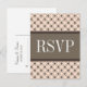 Trendy and chic Fancy Lattice Wedding RSVP Postcard featuring a stylish circle and diamond studded pattern over a vibrant peach background with a broad two-toned brown border. This elegant RSVP card is perfect for a modern wedding. Easy to customize, simply add your wedding details in the text fields provided. Click "Customize It" to find more personalization options.