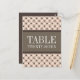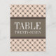 Trendy and chic Fancy Lattice Table Number Postcard featuring a stylish circle and diamond studded pattern over a vibrant peach background with a broad two-toned brown border. This elegant table card is perfect for a modern wedding. Easy to customize, simply add the appropriate table number(s) in the text field provided. Click "Customize It" to find more personalization options.