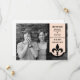 Modern and simple Fleur De Lis Banner Save the Date Announcements in peach featuring a scallop edge banner adorned with a chic damask flourish. This stylish save the date invitation is perfect for announcing your elegant wedding. Easy to customize, simply add a cute couple photo and your wedding details in the text fields provided. Click "Customize It" to find more personalization options.