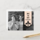 Modern and simple Fleur De Lis Banner Save the Date Postcard in peach featuring a scallop edge banner adorned with a chic damask flourish. This stylish save the date postcard is perfect for announcing your elegant wedding. Easy to customize, simply add a cute couple photo with your wedding details in the text fields provided. Click "Customize It" to find more personalization options.