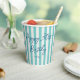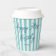Personalize your event with custom name paper cups — perfect for enjoying coffee or a cool soda! This chic design features trendy script typography, and a simple striped pattern with a faux linen look. Customize the template with a name and age — perfect for milestone birthdays including 18th, 21st, 30th, 40th, 50th, 60th, 70th, 80th, 90th, and 100th! This elegant design blends timeless style with a modern twist, and the text can easily be adjusted for anniversaries, holidays, office parties, or a special occasion. Printed colors: natural mint green, blue-green, dark blue, navy, and white.