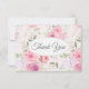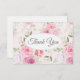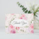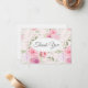 This flat thank you note card is shown in the white linen paper with a lovely pink multi floral print. Envelopes included