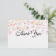 This flat thank you note card is shown in white linen paper with a lovely pink multi floral print. Envelopes included
