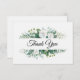 This flat thank you note card is shown in the white linen paper with a lovely White flowers print. Envelopes included
