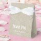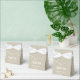 A cream natural linen background makes a lovely wedding favor box with a white bow and the words Thank You in white, ready to customize with your own names and date.