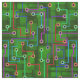 Colorful nodes connected by straight lines to make an interesting, interconnected network. Now with a dark green background and little gold pins around the nodes.
