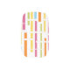 This nail art has a mid-century modern design of colored vertical lines with white horizontal lines.