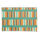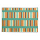 This pillowcase has a mid-century modern design of horizontal lines made from vertical stripes in seafoam, off-white, two oranges, and brown.