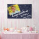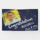 Welcome your graduation party guests and honor the graduate with this editable navy blue and white banner sign featuring the graduate's photo. The design has simple, clean white lines against an editable navy blue background and muted stars with a brush script title "Congratulations NAME" and graduation year in editable white. You can change the background and text colors to coordinate with your photo, school colors or party theme colors.