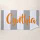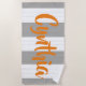 Funky And Stylish Add Your Own Name Lines / Stripes Big Word Beach Towel to add to your collection of sea / ocean / lake adventures accessories. A cool gift / present for all who love unique custom design personalized items, positive vibes, holidays, happy colors, minimalism etc. Orange, white, grey. Change the background color to suit your ow taste and style.