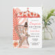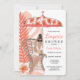 Lingerie bridal shower invitation features coral and pink tropical flowers, umbrella and brunette bride to be. Available with blonde, brown, and red hair and light and dark skin.