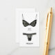 Lingerie insert card featuring feminine black lace bra and panties. Customize with the bride's undergarment measurements. Great to enclose with bachelorette party invitations to ask the girls to bring the bride something special for the honeymoon.