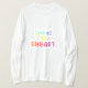 The "Linked by Heart" t-shirt design features the phrase in bold, multicolored letters, creating a vibrant and eye-catching display. The colors used in the text evoke a sense of connection and warmth, reflecting the sentiment behind the phrase. The design is simple yet impactful, making it suitable for a variety of occasions and styles.