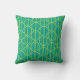 Linked graphic outline in a spring lime green tone on a marine green colored ovals patterned cushion pillow. Pattern designed by Sarah Trett. Would look great in a modern lounge room.