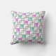 Linked graphic squares and square colored patches patterned cushion pillow. Pattern designed by Sarah Trett. Would look great in a modern lounge.