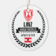 Lightweight, smooth, pure white ornament with nice sheen. Perfect size to be seen from across the room ... and to attract closer inspection! Price was great for ordering enough for the whole family! Clear, bold black design just as requested. Matches the order exactly. Just so nice!