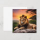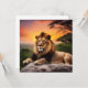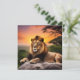 Beautiful Lion laying on a rock with jungle sunset behind