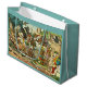 A VERY neato full color print dating to the 1870-something*, depicting the scene at a lion couple's wedding reception. From the artist's estate tons of my other items comes from. She had scratched in pencil on the back what looks like 1870, or maybe 1878, or maybe 1879. I first guessed that 7 might have actually been the number 1, but they weren't making things like this in 1810, 1818 or 1819. Thus and therefore, sometime in 1870s. (Penmanship was not really in her wheelhouse.) The original print is captioned in French and Italian, and translates as “The various breeds gathered in a banquet to show the peace of the animal world, celebrate the wedding of the Lion and the Lionesses. The magician will give the gifts of circumstance." Let me add something to that, to wit: It looks fantastic on all kinds of EVERYTHING, including including gift bags. Wanna see more old? Here's my blog! www.fullservicebohemian.blogspot.com