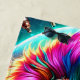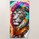 This beach towel has an artsy lion pictured on it.