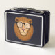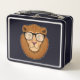 Lion as Nerd with Glasses Metal Lunch Box