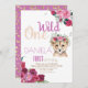 Lion cub Girl Flowers glitter 1st Birthday Party Invitation