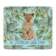 This adorable lion cub design features a teal green jungle forest theme with leaves patterns. It is a perfect choice for those who adore felines, appreciate nature, and enjoy teal color in their decor. The design is unique and can be personalized with a custom name, making it a one-of-a-kind gift. Feel free to reach out to me for any feedback or to discuss special orders, as we take pride in creating tailor-made designs for our customers.