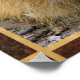 A beautiful lion face closeup photo image. Stunning and gorgeous animal. Majestic Lion Photograph. The king of the animal kingdom! With a textured, rustic, grunge, dark brown background and gold bars framing the picture. Every element can be resized and moved around.