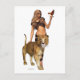 This design features a fantasy image of a beautiful ancient warrior queen taking a walk with her companions, a golden lioness and small red bird.