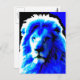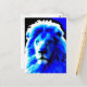 The King of the Jungle. A retro screen print inspired close-up portait of a lion's head in striking colours - blue, black and white. Postcard with a customizable design for you to personalise with your own text, pictures and ideas. Created using original photographs and digital effects by Jess Perry.