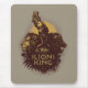 Check out this woodcut style design featuring Rafiki holding up Simba at sunrise, with two adult lion heads on either side with the text "The Lion King" below.