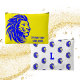 A blue lion mascot on a yellow background with customizable text makes this pencil pouch or cosmetic bag one-of-a-kind. On the back, personalize it further with your student's initial.