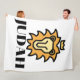 This fleece blanket has a design that features the word "Judah” in a bold unique print font with black letters displaying a cartoon style image of a lion's head with king's crown in the center in this faith based quote theme. This Blanket is made from 100% buttery soft and cozy polyester fleece with edge-to-edge vibrant full color sublimation printing and double edge stitching with a off-white colored back machine washable.