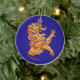 Linda Baysinger Peck's painting of a gold, herladic rampant lion, on blue. Just add your own text on the reverse side, to personalize.