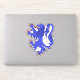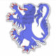 This design by Richard H. Fay features a heraldic lion rampant azure, a blue lion depicted in profile rearing up on its hind legs, ready to stave off all attackers.