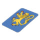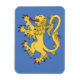 This design by Richard H. Fay features a heraldic lion rampant, a lion depicted in profile rearing up on its hind legs, ready to stave off all attackers.