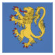This design by Richard H. Fay features a heraldic lion rampant, a lion depicted in profile rearing up on its hind legs, ready to stave off all attackers.