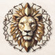 A stylish, symmetrical lion with a geometric approach to emphasize its regal stature. Utilize clean lines and balanced shapes to convey the lion's commanding presence and elegance.