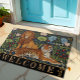 Welcome Doormat featuring Majestic Lion & Tiger in the jungle of Art Nuovo surrounded by a beautiful exotic plants, lotus flowers and "strawberry thief" vintage artwork following in style of William Morris. Fabulous gift for new house owners and wedding gift. Easily customize welcome text. For smaller (resized) version adjustment, please see in my store.