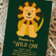 Lion Wild One First Birthday Gold and Green Invitation
