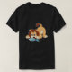 My 11 yo wore adult XL (5’7” 165#). The 8yo is small framed. She wore adult small and tied it in the back. Grandma wore adult large with long sleeve shirt underneath. Tall girl adult medium. Dark haired male adult large. Good quality dark Heather gray, Gildan brand shirt. -it was next up from basic choice and cost about $20 per shirt. Not too thick or thin. Washed and dried well, no major shrinkage. Not see-through. Can wear a bra under it fine. Screen print is just as shown and well done, front and back.