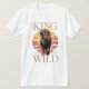A majestic lion stands proudly with the words King of the Wild overlaid, representing the powerful and dominant nature of this big cat in its natural habitat.
