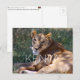 Send this beautiful postcard to your loved ones featuring a lioness resting in the shaded grass, looking back with a calm and steady gaze.