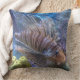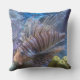 The lovely lionfish on this 20” Throw Pillow is swimming in a colorful saltwater aquarium. It is an original photograph by ZoeSPEAK, showing the pattern of thick and thin stripes and fancy fins on this unusual looking fish. It is a colorful photo with the tropical blue, yellow and pink of the aquarium and the salmon pink nose of the fish.