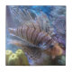 The lovely lionfish on this small Ceramic Tile is swimming in a colorful saltwater aquarium. It is an original photograph by ZoeSPEAK, showing the pattern of thick and thin stripes and fancy fins on this unusual looking fish. It’s a colorful photo with the tropical blue, yellow and pink of the aquarium and the salmon pink nose of the fish.